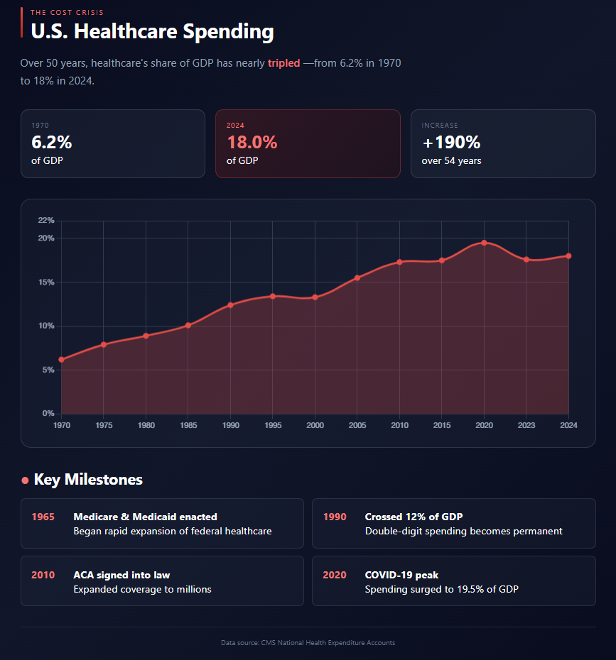 Americans spend nearly $15,000 per capita annually on healthcare—far more than any other country on Earth. Yet our health outcomes lag behind countries spending half as much.
